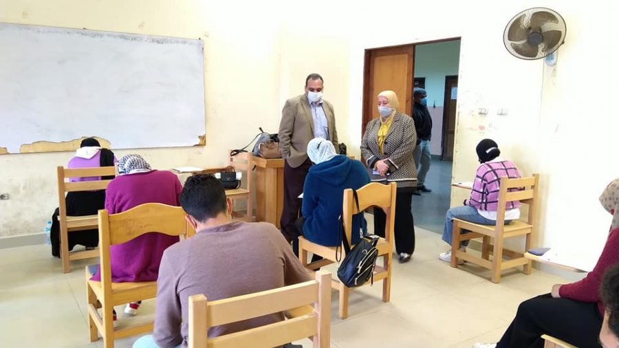 وتفقد سيادته من خلالها لجان الامتحانات بالكلية فى ظل تطبيق الاجراءات الاحترازيه.